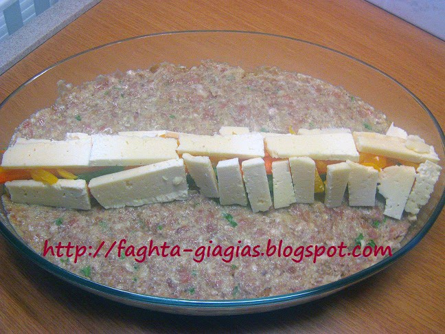 Ρολό κιμά γεμιστό με πιπεριές και κεφαλοτύρι..
