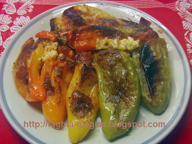 Πιπεριές γεμιστές με τρία τυριά και ζαμπόν..