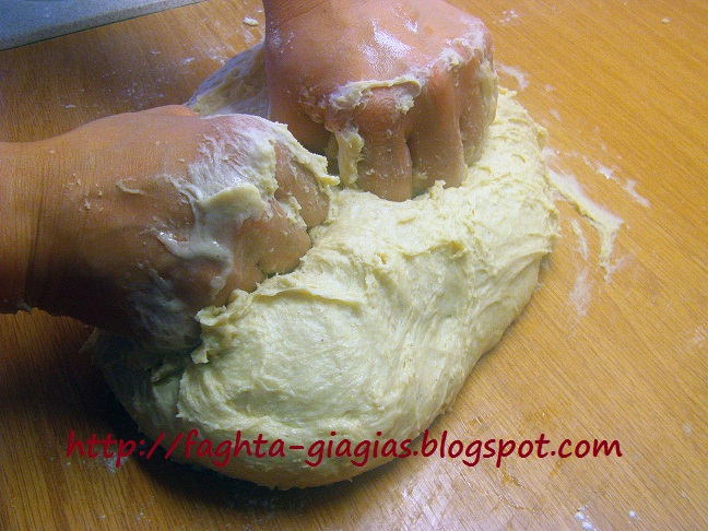 | Προσθέτουμε λίγο - λίγο το αλεύρι, συνεχίζοντας το ζύμωμα, μέχρι να πετύχουμε μια ζύμη πολύ μαλακή, που να κολλάει στα χέρια. Το αλεύρι μπορεί να μην το πάρει όλο. (Επειδή η ζύμη κολλάει στα χέρια, για να μπορούμε να τη δουλέψουμε, ρίχνουμε σε μια άκρη στον πάγκο μας 2 - 3 κουταλιές της σούπας σπορέλαιο και με αυτό αλείφουμε τα χέρια μας). | |